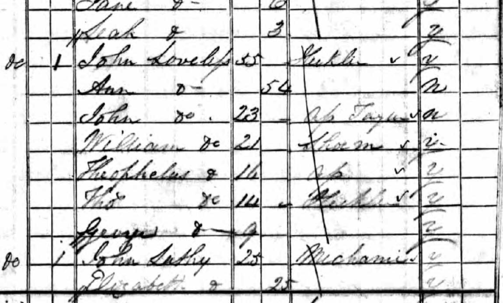 Regarding the second wife, Ann Moore, she was listed as “infirm” in the 1851 census. She does not appear in the 1860 Ohio census with John86, who came to live with his son Thomas. She perhaps died in Dorset during the 1850’s, and we have a possible match with an Ann Loveless who died in the Parish of Winterborne St Martin 28 May, 1856. However, we have not yet been able to tie her to John86. I have a note from many years ago that she died at sea, which is quite possible.