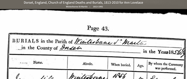 5. Burial of Ann Lovelass in the Parish of Winterborne St Martin 28 May, 1856. (Note spelling of Loveless is with an “A”) We once thought that this might be the elusive Ann Moore Loveless, but some recent research by Gayle Young seems to lessen this likelihood, as the 1851 census lists someone that could be her in Winterborne St Martin with a James Loveless. In addition, Maureen Loveless Witt has found a marriage register entry for a James Loveless and Anne Woodsford in the parish of Winterborne in 1813 which seems to lessen the likelihood that Anne Moore Loveless is the Winterborne Anne Loveless who passed away in 1856. So we are still looking. As noted earlier, there still is the possibility that Anne Moore Loveless died at sea.