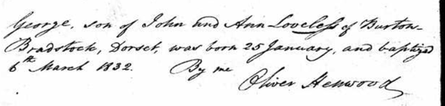 From 1851 England census for George Loveless Dorset Bradpole Bridport