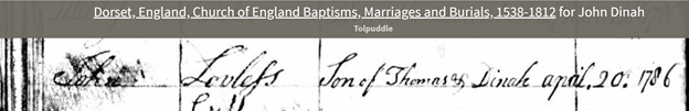 - John Loveless Baptism C of E April 20, 1786 in the Tolpuddle Parish, son of Thomas and Dinah)